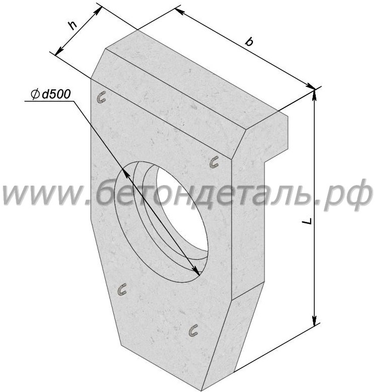 Также блок может иметь на продольной стороне выступ-бортик или иметь противопучинные выступы для оголовочной части трубы. Выступы, уложенные друг к другу, выступают в качестве лотка для бетонных полуколец. Блоки запроектированы с учетом устойчивости против опрокидывания стенок трубы.