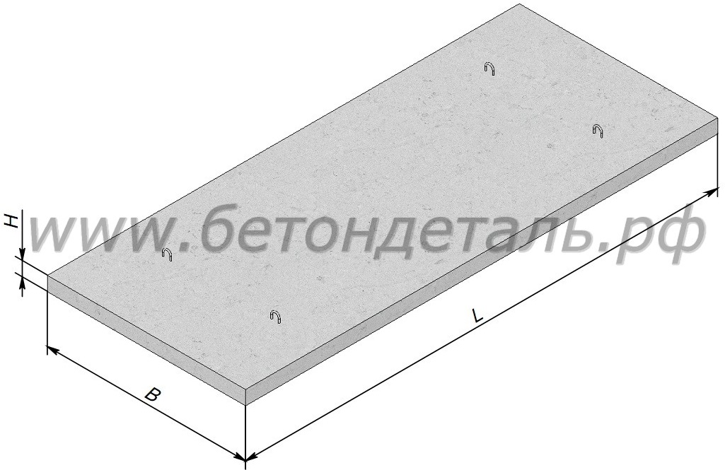 Вес плоской плиты варьируется от 95 до 1135 кг, а высота от 80 до 97 мм. Ширина составляет от 800 до 1490 мм, длина колеблется от 803 до 3180 мм. Объем бетона составляет от тридцати восьми тысячных до четырехсот пятидесяти пяти тысячных кубических метров.