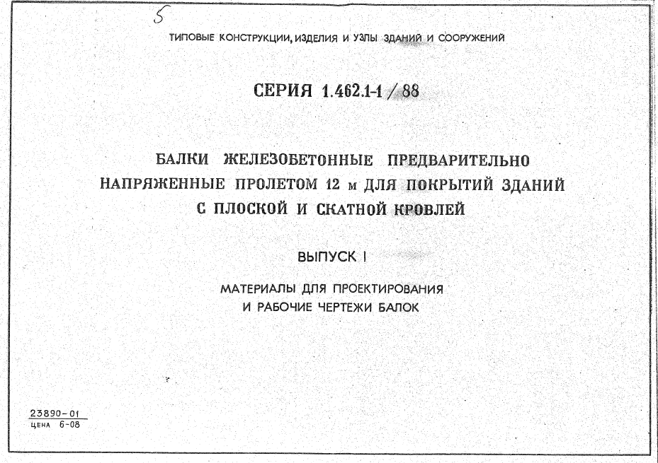 Серия 1.462.1-1/88. Балки железобетонные предварительно напряженные пролетом 12м для покрытий зданий с плоской и скатной кровлей