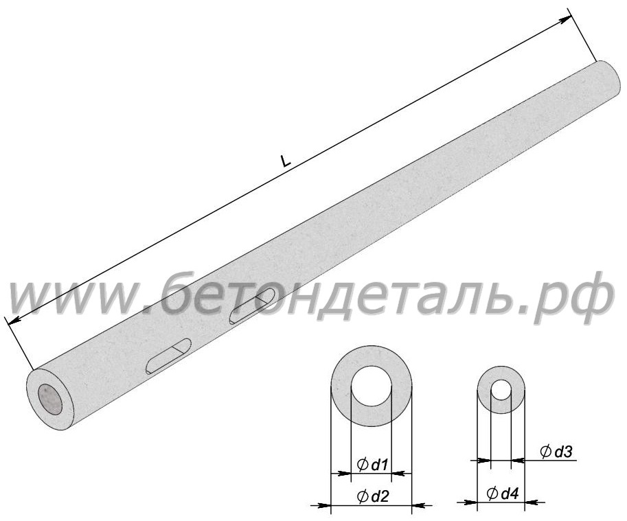 Стойки СЦП изготавливаются из высокопрочного тяжелого бетона марки М400-500 (В40). Бетон, используемый для производства стоек цилиндрических не подвержен электрокоррозии. Бетон обладает высокой морозостойкостью F100-F300, водонепроницаемость в зависимости от конкретного проекта W6-W8. Стойки в процессе производства обязательно гидроизолируются в заводских условиях. Стойки СЦП армируются высокопрочными стержнями, выполненными из стали класса А-V. Все стальные изделия стоек обрабатываются антикоррозийными веществами. Масса изделия составляет 4850 кг. Таким образом, готовые изделия имеют достаточно продолжительный эксплуатационный срок, и обладают высокой надежностью и безопасностью.