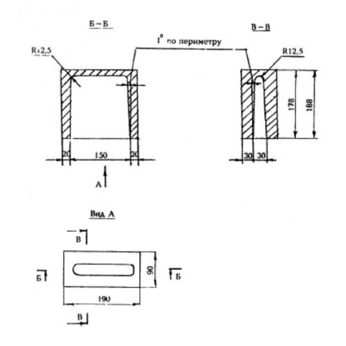 Камни для кладки стен КСР-ПР-ПС 19. Унифицированные изделия, имеющие прямоугольную форму с рядом конструктивных особенностей в виде выступов, углублений и отверстий.