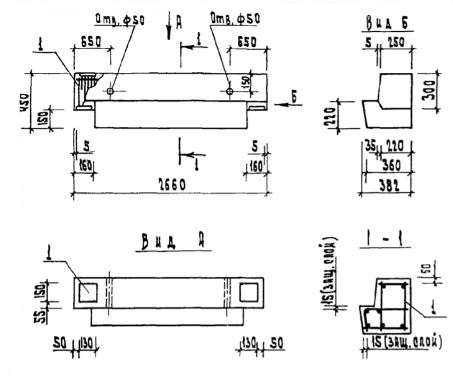 РЛП 4.27  Ригели однополочные, устанавливаемые в лестничных клетках для опирания многопустотных плит и лестнечных маршей; Серия 1.020-1/83.