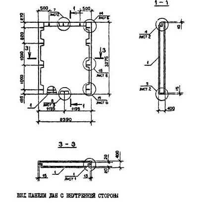 Панели наружных стен однослойные для зданий с  высотой этажа 3,3 м (Серия 1.090.1-2с).