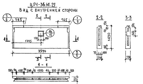 Серия 1.117-9    Панели групп ЦР1, ЦР2, ЦР4, ЦР5  толщиной 250 мм.