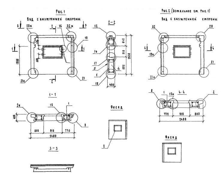 1 или 2 - несущая способность, зависящая от марки бетона (1 М50, 2 - М75);