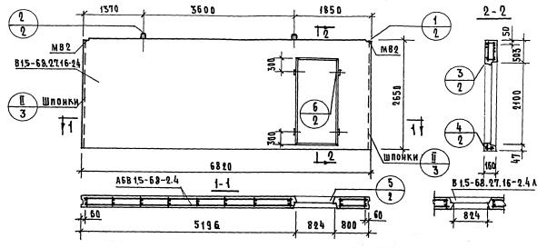 В1.5-68.27.16-2.4л    Внутренние стеновые панели   (Серия 1.131-1).
