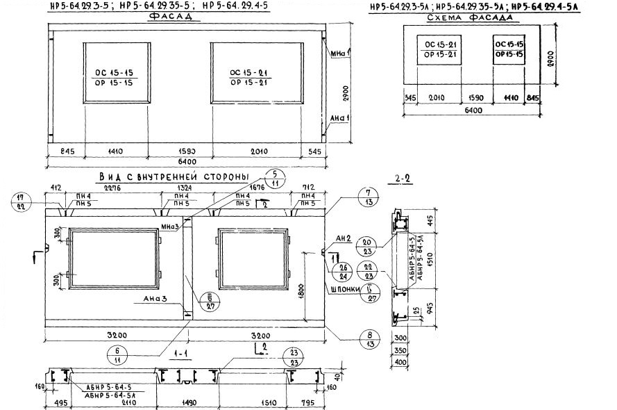 НР5-64.29.4-5л Наружная стеновая панель рядовая по Серии 1.132-1.