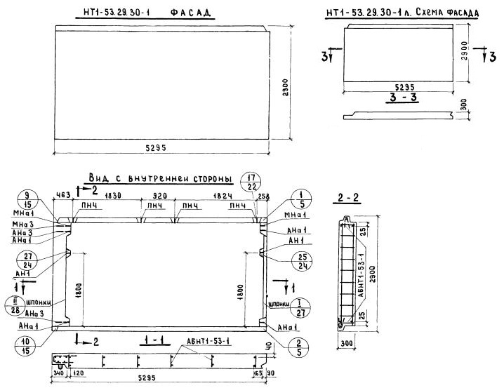 НТ1-53.29.30-1л   Наружная стеновая панель торцевая по Серии 1.132-1.