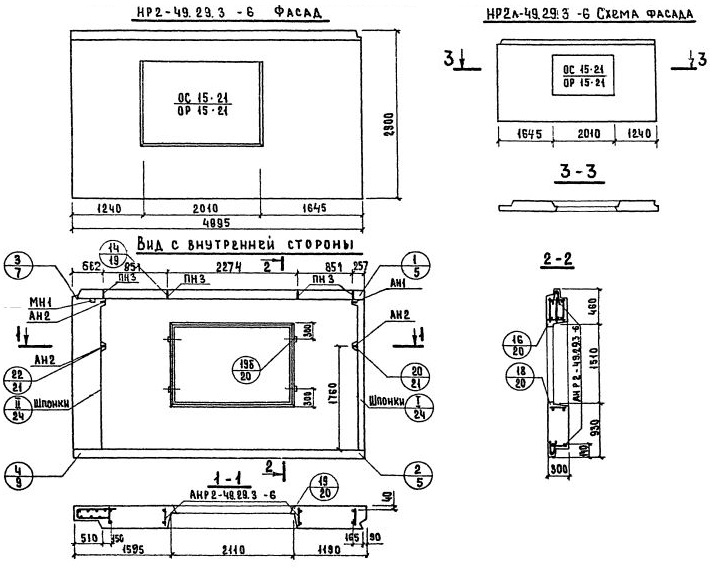 НР2л-49.29.3-6    Наружная стеновая панель рядовая по Серии 1.132-2.