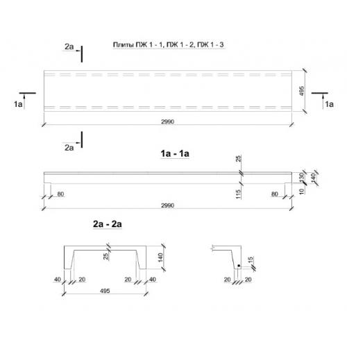 ПЖ 1 Плиты ребристые Серия 1.465.4-19.