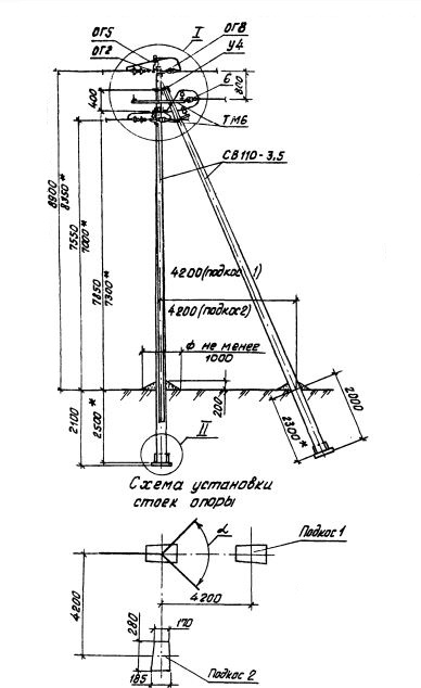 УОА 10-2  Угловые ответвленные анкерные опоры Серия 3.407.1-143.