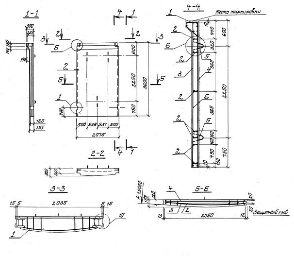 Панель стеновая для цилиндрических сооружений с радиусом кривизны 15 м; высотой 3,6 м; первого типа по нагрузке.