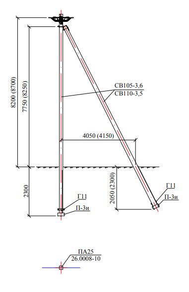 ПА 25  Переходные анкерные одноцепные опоры (концевые) по Шифру 26.0008.