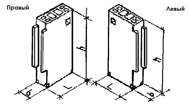 Маркировка вентиляционных блоков представляет собой цифробуквенные набор, который включает в себя условные обозначение вида изделия, типоразмера и высоты в мм. Также в дополнительно в маркировке указывается тип исполнения изделия: «п» - правое, «л» - левое.